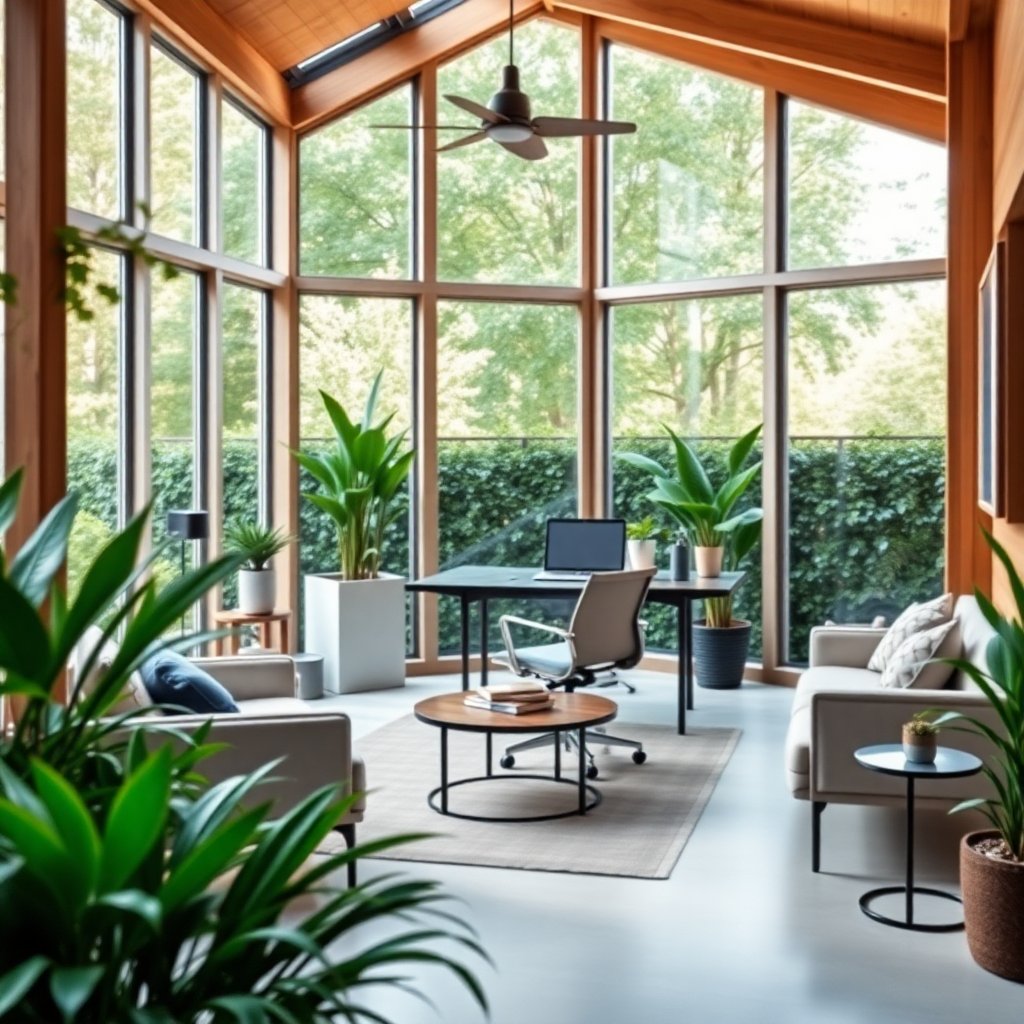 При проектировании вашего рабочего пространства важно учитывать не только визуальные и функциональные характеристики, но и экологические факторы. Использование устойчивых и экологически чистых материалов, таких как вторично переработанная древесина или переработанный бетон, становится важным аспектом современного строительства. Забота об окружающей среде должна стать краеугольным камнем вашего проекта. Кроме того, внедрение энергосберегающих технологий, таких как солнечные панели или системы сбора дождевой воды, может значительно снизить влияние на природу.