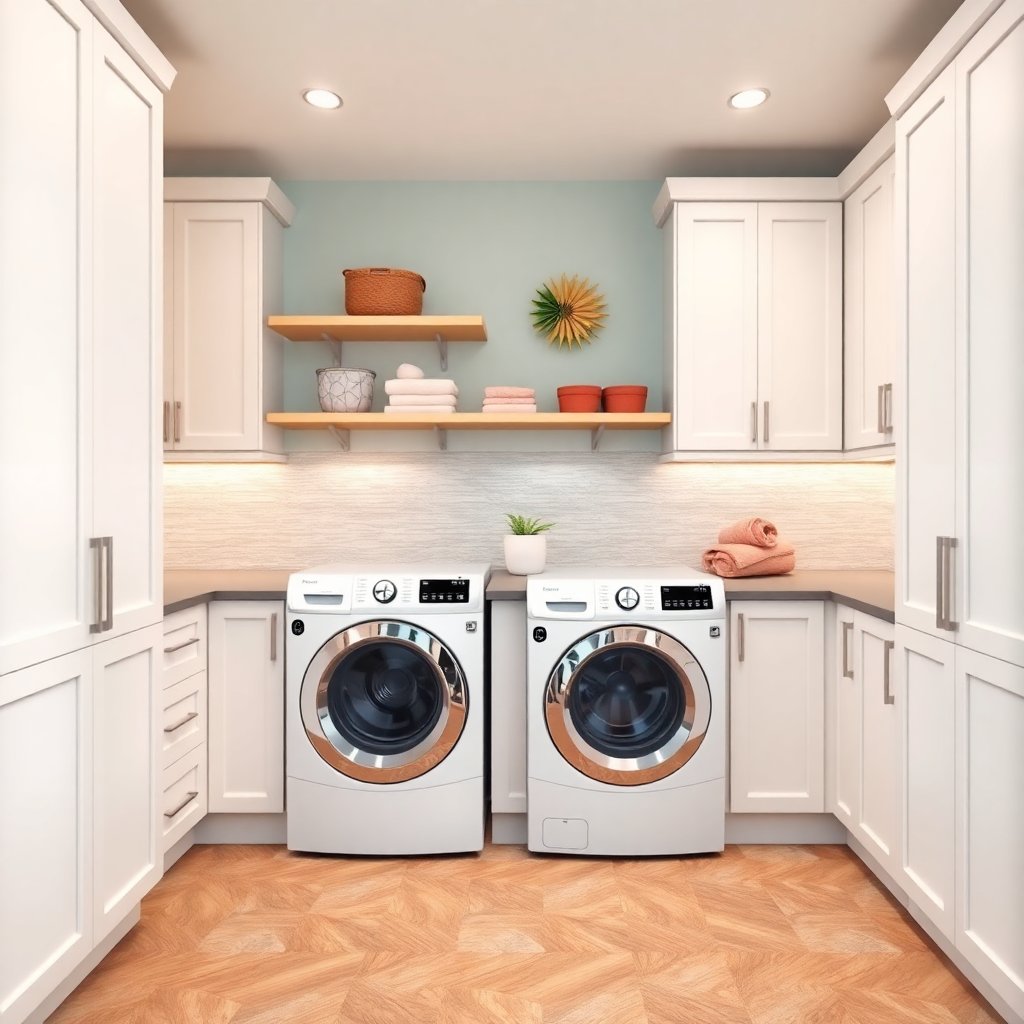 Важно учитывать, что все элементы должны гармонировать друг с другом, включая шкафы, цвет стен и аксессуары. Удачный цветовой баланс способен сделать прачечную местом, где вам будет приятно проводить время.